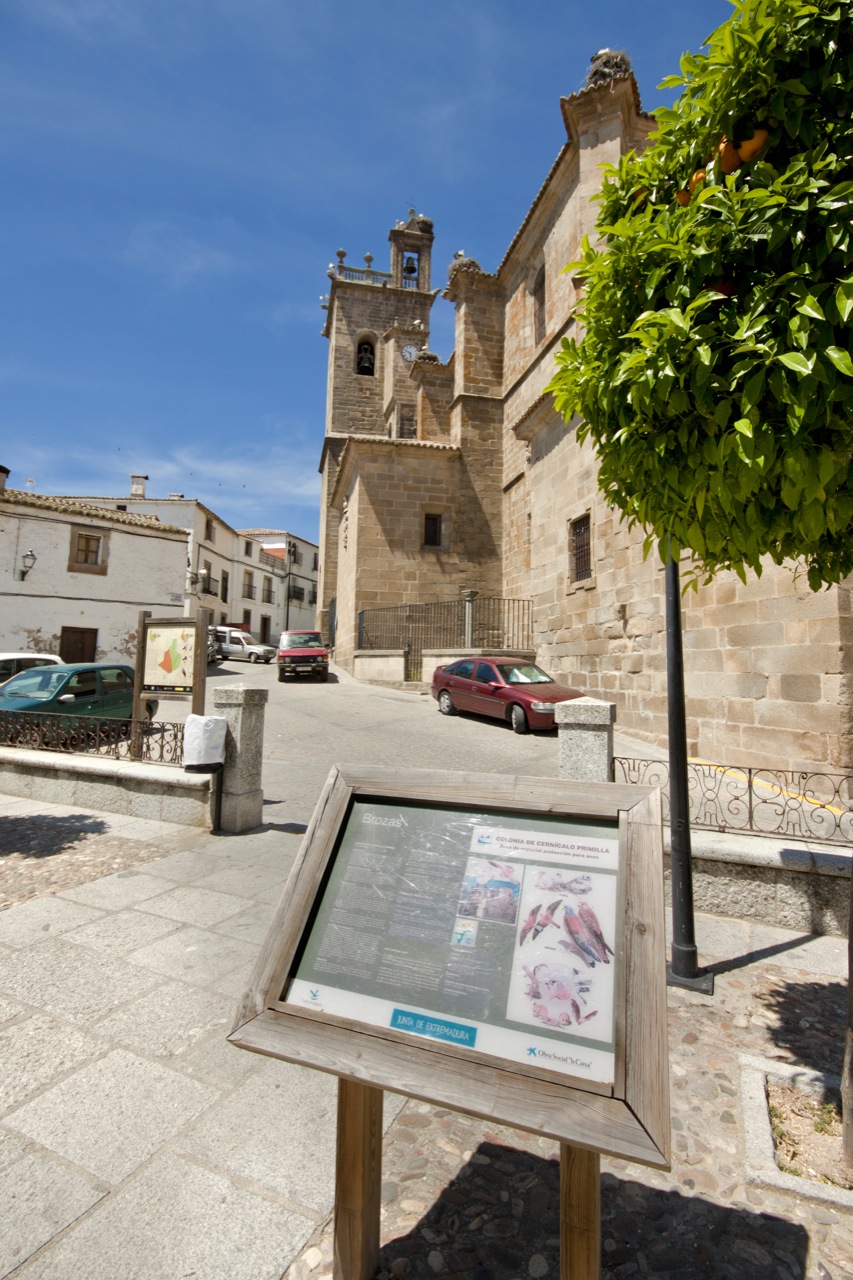This is one of Extremadura's urban Special Protection Area for Birds, mainly populated by the lesser kestrel, which is used to living among people and nests in holes in buildings. -