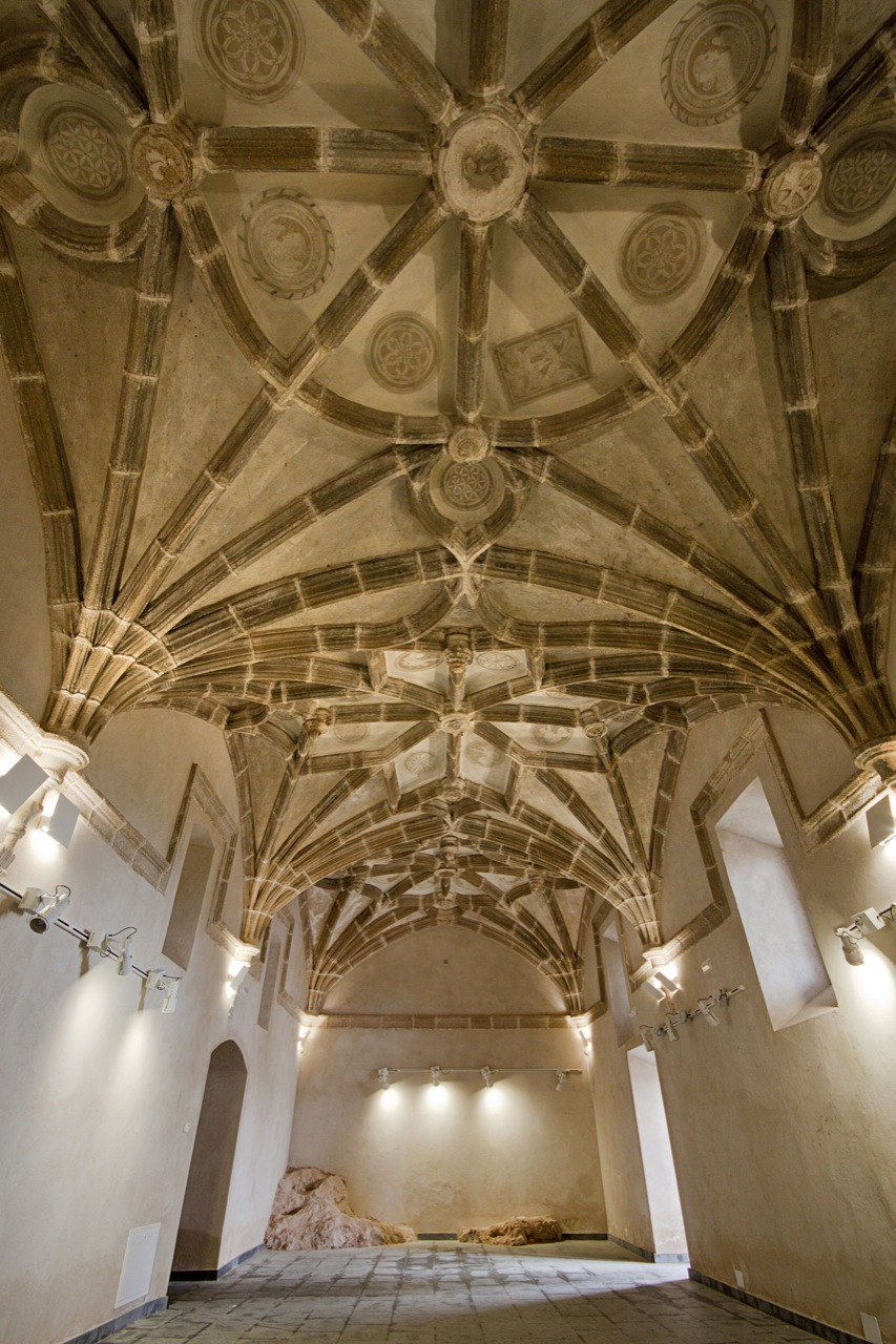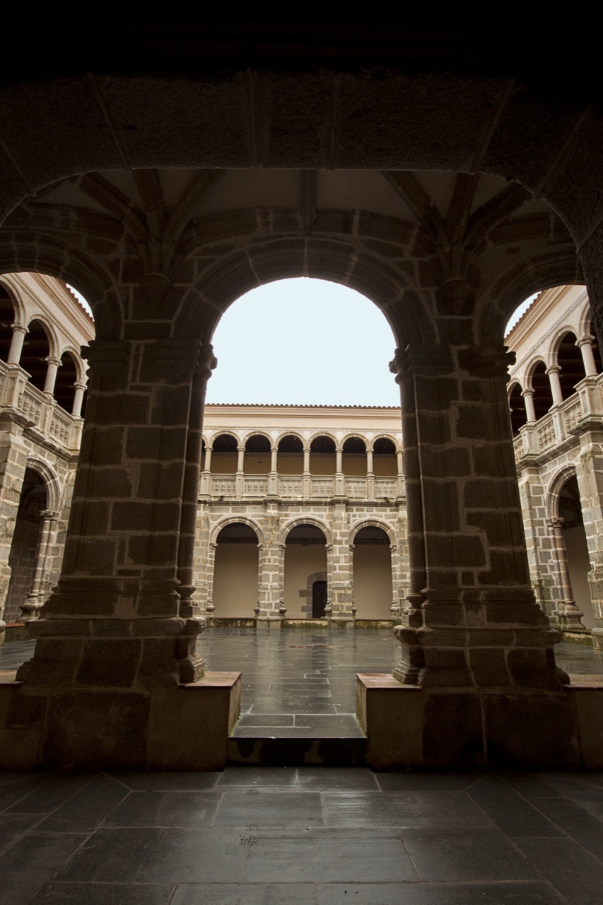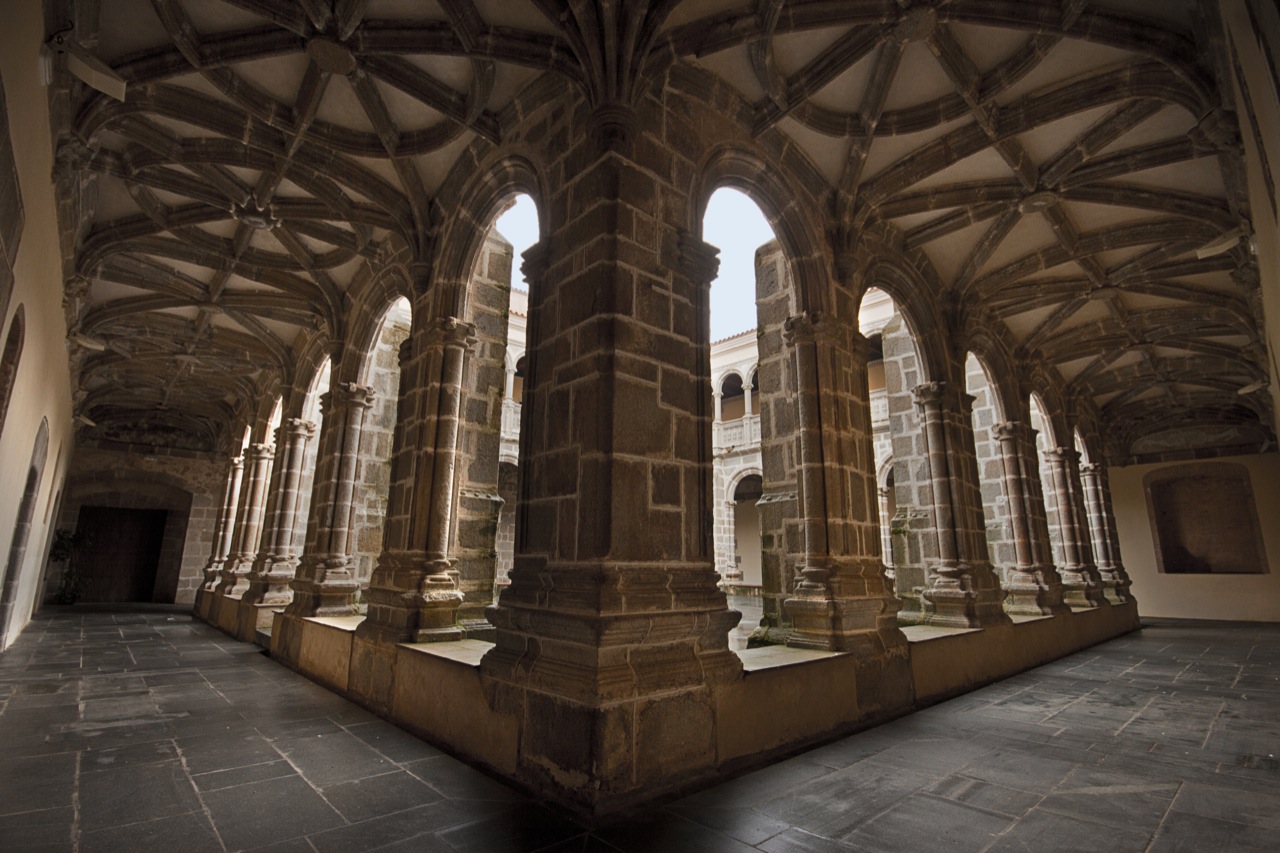 The main access is from the square, through a hall with a ribbed vault. Once inside, you will find a two-storey cloister built of dressed granite, with rounded arches on the sides.