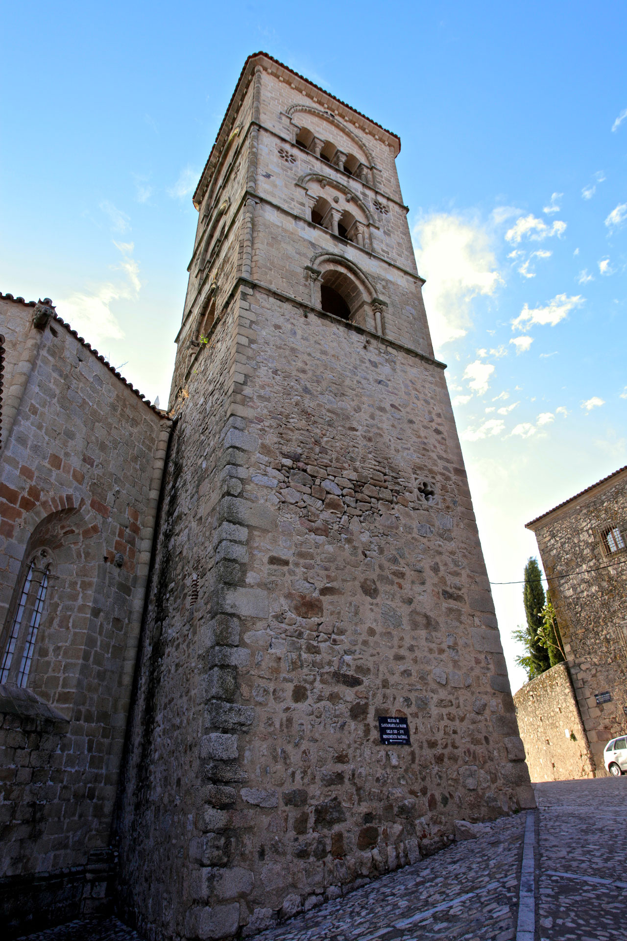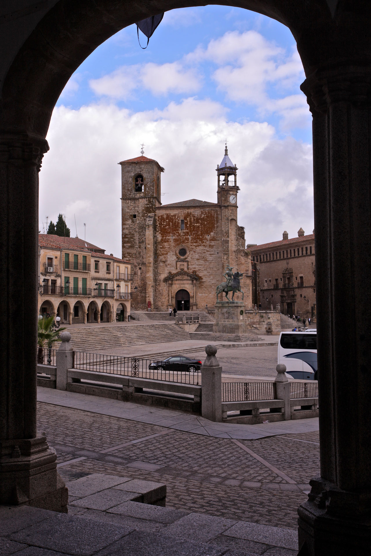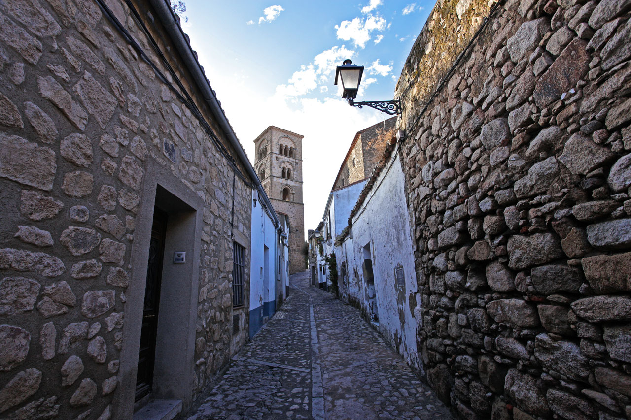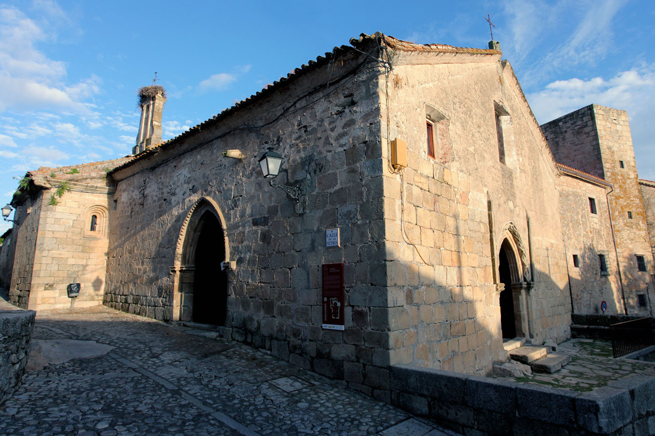 After climbing up to the Castle, standing at the highest point of the town, from where you have magnificent views, you can lose yourself in the town's streets. Once inside the walled enclosure, the Chapel of San Pablo ( 16th century) and the four gates remaining of the original seven are well worth a look, as are the Alberca - a water deposit hewn of solid rock - and a Hispanic-Moorish water cistern. From there, carry on to the Church of Santiago, a 12th-century Romanesque building, subsequently restored in the 17th century, where the sculpted, wooden figure of the Christ of the Waters is housed. Continuing on your way you will come to Plaza Mayor, in the heart of the town centre. Renaissance in style, this porticoed square is presided over by the equestrian statue of Francisco Pizarro. Traders and artisans gathered there until the homes of the most important noble families were built there in the 16th century, such as the House of La Cadena, that of the Orellana, or that of the Chaves-Cárdenas. Also worthy of note is the Palacio de la Conquista, which was started by Hernando Pizarro, brother of the discoverer, and which has an outstanding balcony; the Palacio de los duques de San Carlos, the Palacio de Piedras Albas or the Palacio de los Carvajal-Vargas with its corner balcony and its chimneys. You also have the Church of San Martín de Tours and the Church of Santa María la Mayor nearby. The latter is one of the most important religious monuments in the area owing to its age - the Julia Tower dates from the 13th century - and its unmistakeable architecture, which bears the marks of the restoration work carried out in the 14th and 16th century.