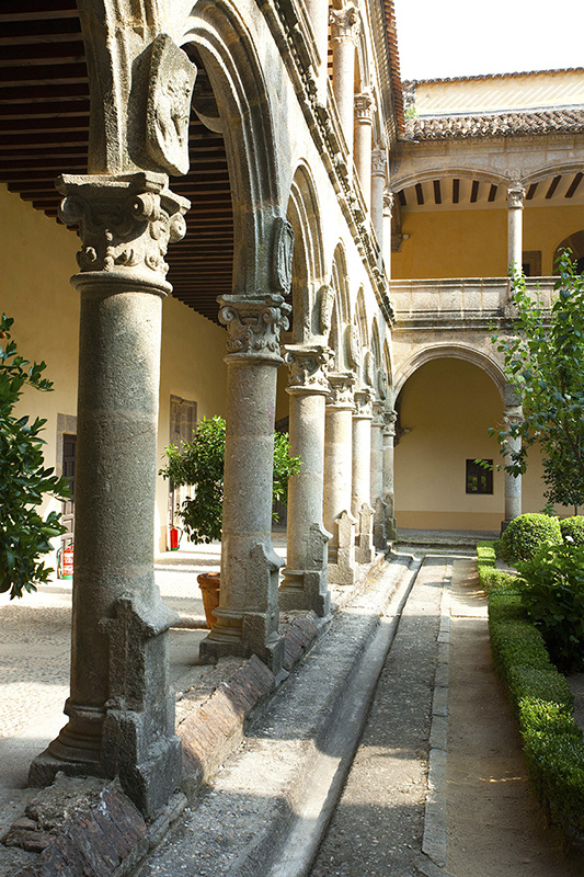 El monasterio propiamente dicho, verás que se divide en iglesia y dos claustros, sin contar la casa-palacio del rey. La iglesia es un templo tardo gótico, con una sola nave y cabecera poligonal. Se comunica con el claustro gótico, la austeridad marca su esencia. El claustro nuevo es renacentista y más amplio que el anterior. Está más ornamentado, con volutas y guirnaldas en sus columnas.