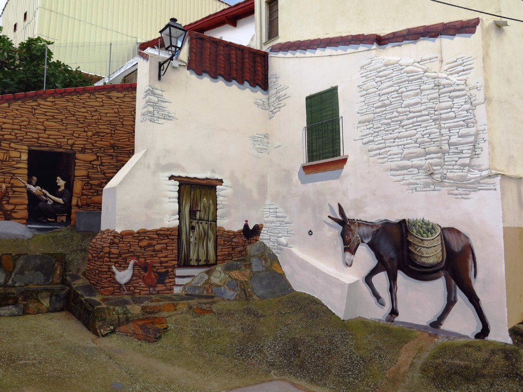 Todo comenzó en 2016 con ‘El rincón del burro’, la primera de las obras. Desde entonces, debido a la buena aceptación que ha tenido esta iniciativa entre los romangordeños y los visitantes, el pueblo se ha llenado de trampantojos, pero también de poemas de Machado o Gabriel y Galán, fragmentos de libros y mensajes contra la despoblación o la violencia de género.