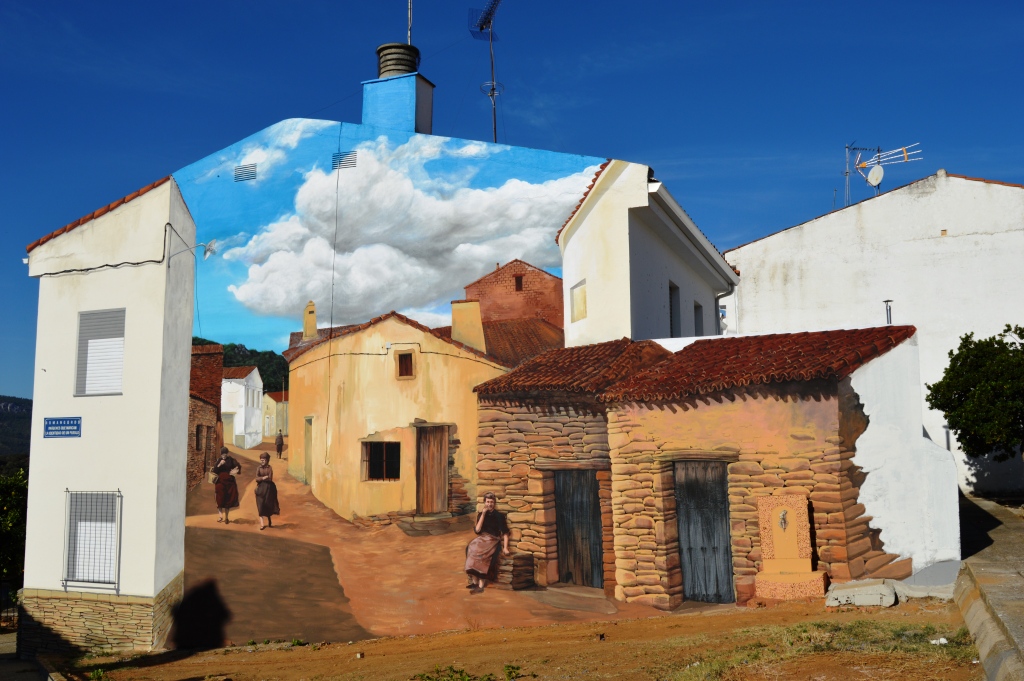 Numerosos pueblos de Cáceres presumen de obras de arte urbano gracias a una iniciativa que puso en marcha la Diputación provincial en 2016. Desde entonces, ‘Muro Crítico’ ha invitado a artistas extremeños y de fuera de la región a plasmar sus creaciones en muros y fachadas. La lista de localidades es amplia y crece año tras año: Plasencia, Navalmoral de la Mata, Coria, Baños de Montemayor, Hervás, Riolobos, Moraleja, Talayuela, Serradilla, Caminomorisco, Guadalupe, Logrosán, Madrigalejo, Brozas, Cañamero, Alcuéscar, Losar de la Vera, Salorino, Torrejoncillo, Azabal, Jarandilla de la Vera, Navaconcejo...