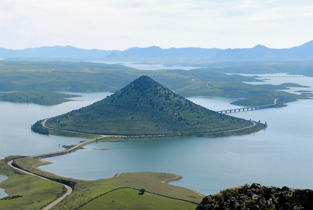 Con una forma cónica casi perfecta, este capricho geológico emerge de las aguas del embalse de La Serena (el más grande de España). Las vistas de La Serena y La Siberia son espectaculares desde su cima. Parece un montón de trigo visto desde lejos, un sorprendente cono de 170 metros de altura. Tras la construcción del embalse, el cerro se convirtió en una isla en medio de las aguas del Zújar, bordeada por una carretera de una sola dirección.